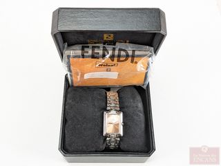 ![]() | #202 | Montre Fendi mouvement suisse au quartz, mesurant 23 millimètres avec sa couronne, bracelet d'origine, dans son coffret avec ses papiers (besoin d'une nouvelle batterie) Montre Fendi mouvement suisse au quartz, mesurant 23 millimètres avec sa couronne, bracelet d'origine, dans son coffret avec ses papiers (besoin d'une nouvelle batterie) | |