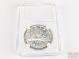 ![]() | #210 | Pièce canadienne d'un dollar 1962 en argent, encapsulée Pièce canadienne d'un dollar 1962 en argent, encapsulée | |