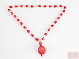 ![]() | #227 | Collier de corail avec billes et fermoir en or 14k, mesurant 17 pouces de longueur Collier de corail avec billes et fermoir en or 14k, mesurant 17 pouces de longueur | |