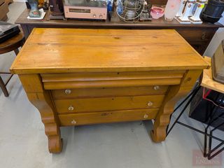 ![]() | #234 | Commode canadienne en pin à quatre tiroirs, circa 1850, avec clous carrés, mesurant 37x43x20 pouces Commode canadienne en pin à quatre tiroirs, circa 1850, avec clous carrés, mesurant 37x43x20 pouces | |