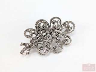 ![]() | #224 | Broche victorienne en argent, sertie de multiples marcassites et mesurant 2 pouces Broche victorienne en argent, sertie de multiples marcassites et mesurant 2 pouces | |
