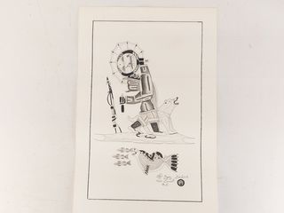 #11Lot de sculptures esquimaudes sur pierre à savon - la scène de pêche arctique mesurant 12 pouces de longueur et la chouette mesurant 7 pouces de hauteur