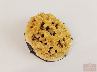 #194Bouteille à priser japonaise sculptée sur os, représentant une scène érotique et mesurant 3.5 pouces de hauteur