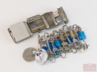 #224 Bracelet en or blanc et jaune 14k signé Fibo, fait en Italie et mesurant 7.5 pouces de longueur