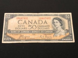 | #230 | Billet de $50 DEVIL FACE 1954 Billet de $50 DEVIL FACE 1954 | SOLD – CAD$ 90.00 | |