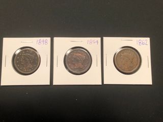 | #292 | 3 Pièces de 1 Cent Grosse US de 1848-1854-1862 3 Pièces de 1 Cent Grosse US de 1848-1854-1862 | CANCELLED | |