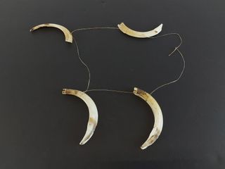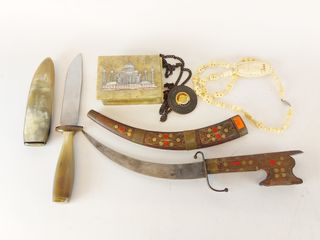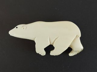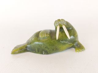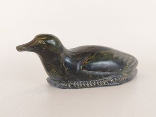| #29 | Sculpture esquimaude sur pierre à savon signée et représentant un chasseur revenant avec sa prise - avec éléments en nerfs de caribou tressés et en ivoire - mesurant 13 pouces de largeur Sculpture esquimaude sur pierre à savon signée et représentant un chasseur revenant avec sa prise - avec éléments en nerfs de caribou tressés et en ivoire - mesurant 13 pouces de largeur | SOLD – CAD$ 120.00 | |