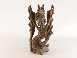 | #9 | Lot de décorations orientales comprenant deux figurines mesurant 14 pouces de hauteur et un dragon céleste sculpté sur bois mesurant 12 pouces de largeur