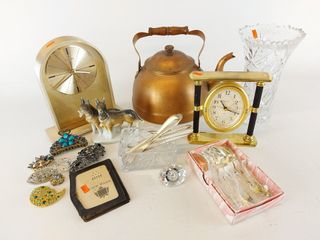 | #4 | Lot varié comprenant porcelaine - théière en cuivre - horloges - vase - et autres