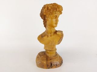 | #28 | Joli buste sculpté sur bois avec des détails fins notamment dans la chevelure - d'après le David de Michel-Ange - mesurant 10 pouces de hauteur