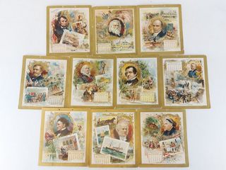 Chromolithographies anciennes - calendriers américains de 1894 - représentant les Généraux et les hommes politiques du 19ème siècle dont U.S Grant et Abraham Lincoln - mesurant 8x7 pouces