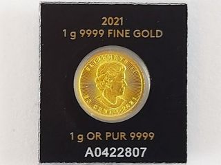 | #224 | Pièces de un gramme d'or pur 9999 - canada 2021 - encapsulées - sans taxes