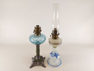 Deux lampes à huiles anciennes - la plus grande mesure 22 pouces de hauteur
