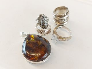 | #210 | Un lot de grosses pierres variées dont bois fossilisé; dolomite, labradorites... la plus grosse mesurant 5 pouces de longueur