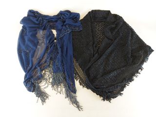 | #230 | Deux châles en soie perlés le bleu mesurant 68x18; le noir 36x46