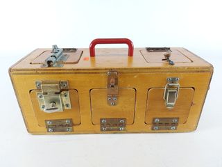 | #34 | Coffre en bois à trois compartiments - art populaire - toutes les serrures sont différentes - mesurant 13.5 pouces de largeur