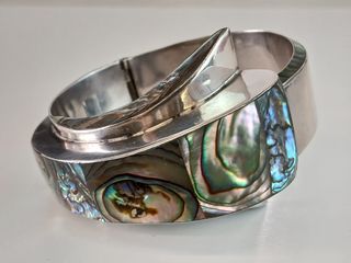 Collier en argent avec fossile de plusieurs millions d'années - mesurant 16 pouces de longueur ainsi qu'une broche en argent signée Alejandro Toussier sertie d'un camée mesurant 0.75 pouces