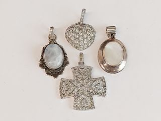 | #192 | Lot de pendentifs en argent sertis de pierres, dont pierre de lune, le plus grand mesurant 1.25 pouces Lot de pendentifs en argent sertis de pierres, dont pierre de lune, le plus grand mesurant 1.25 pouces | SOLD – CAD$ 130.00 | |