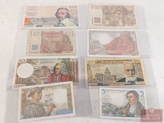 | #69 | Lot de billets français, dont cinq franc 1943, dix francs 1943, cinquante francs 1947, vingt francs 1949, cent francs 1953, cinq francs 1960, dix francs 1965 et mille francs 1954 Lot de billets français, dont cinq franc 1943, dix francs 1943, cinquante francs 1947, vingt francs 1949, cent francs 1953, cinq francs 1960, dix francs 1965 et mille francs 1954 | CANCELLED | |