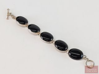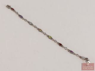 | #206 | Bracelet de style Cartier en argent sterling serti de multiples pierres, mesurant 7.5 pouces de longueur Bracelet de style Cartier en argent sterling serti de multiples pierres, mesurant 7.5 pouces de longueur | SOLD – CAD$ 115.00 | |