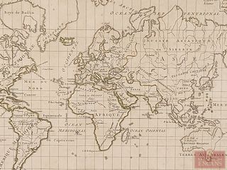 | #44 | Gravure aquarellée à la main d'une carte géographique du monde par Robert De Vaugondy, circa 1761, mesurant 10.25x16 pouces Gravure aquarellée à la main d'une carte géographique du monde par Robert De Vaugondy, circa 1761, mesurant 10.25x16 pouces | SOLD – CAD$ 105.00 | |