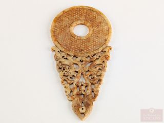 Jade chinois finement sculpté à motifs de dragons et disque Bi, mesurant 9.75 pouces de longueur