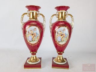 #35Paire de vases en porcelaine japonaise Noritake, peints à la main et mesurant 11 pouces de hauteur