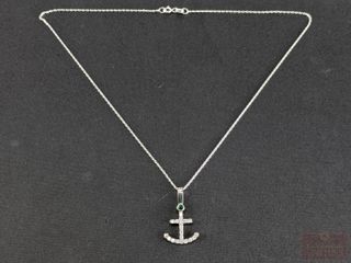 #112Pendentif et chaine en argent serti de diamants et d'une émeraude naturelle, la chaine mesurant 15 pouces de longueur