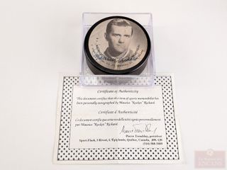 Rondelle de hockey du 500eme but de Maurice Richard signée, avec certificat