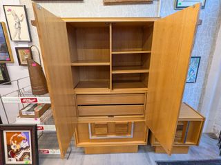 #19Commode Tobago deux corps de style brutaliste mid-century, circa 1970, mesurant 38.75x69.5x20 pouces