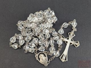 Chapelet en argent et cristal de roche, mesurant 40 pouces de longueur