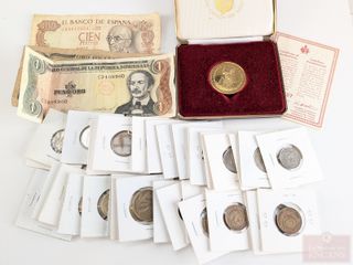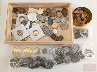 #88Lot numismatique comprenant pièces de dix sous en argent, pièces et billets variés