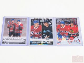 Trois cartes de hockey rookie Young Guns Hudson, Demidov et Slafkovsky