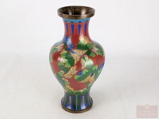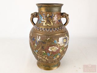 Vase oriental en laiton cloisonné, mesurant 8.5 pouces de hauteur