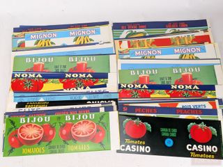 #78Lot d'étiquettes de conserves datant des années 1950, neuves et mesurant 4.25x10.5 pouces chacune