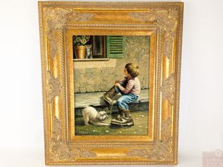 #14P. JAIME- Huile sur toile signée, mesurant 16x12 pouces, avec sceau de la galerie à l'endos