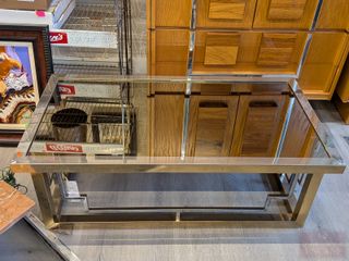 Très jolie table de salon design de style art-déco avec motifs géométriques, mesurant 44x24x15.5 pouces