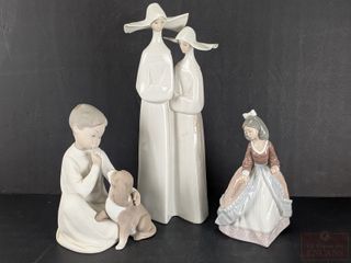 #34Trois porcelaines Lladro, la plus grande mesurant 13 pouces de hauteur