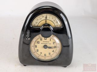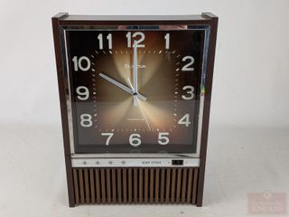 #16Horloge vintage Bulova à transistor avec carillons, mesurant 13.5 pouces de hauteur, fonctionnelle