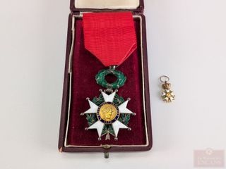 Médaille de la légion d'honneur française de 1870 en argent et or, complète avec la très rare épingle de boutonnière, dans son coffret
