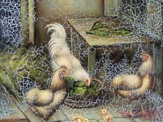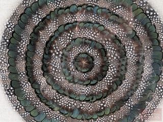 | #19 | Œuvre en plumes véritables mesurant 13 pouces de diamètre, dans son encadrement mesurant 20x20 pouces Œuvre en plumes véritables mesurant 13 pouces de diamètre, dans son encadrement mesurant 20x20 pouces | ||