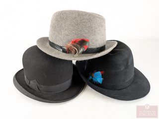 | #179 | Trois chapeaux vintages, dont un en fourrure de castor, un Mansfeild, fait en Angleterre et un Royal Biltmore taille 57, fait au Canada Trois chapeaux vintages, dont un en fourrure de castor, un Mansfeild, fait en Angleterre et un Royal Biltmore taille 57, fait au Canada | ||