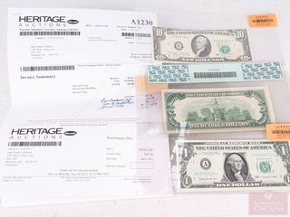| #187 | Lot de billets américains comprenant billet d'un dollar 1963, billet de dix dollars 1981 et billet cent dollars 1950 série C Lot de billets américains comprenant billet d'un dollar 1963, billet de dix dollars 1981 et billet cent dollars 1950 série C | ||