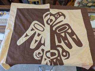 | #55 | Paul JOHNNY - Couverture amérindienne haïda avec boutons de nacre de perle, faite à la main et mesurant 71x59 pouces Paul JOHNNY - Couverture amérindienne haïda avec boutons de nacre de perle, faite à la main et mesurant 71x59 pouces | ||