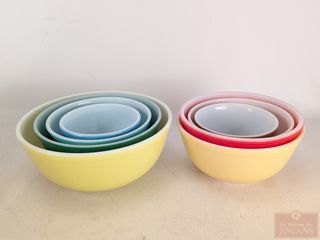 | #181 | Lot de bols vintages en Pyrex, le plus grand mesurant 9 pouces de diamètre Lot de bols vintages en Pyrex, le plus grand mesurant 9 pouces de diamètre | ||