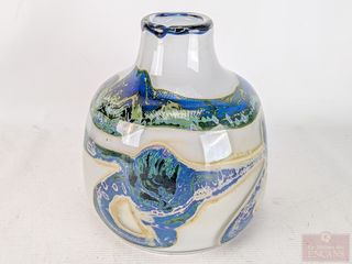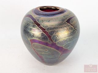 | #76 | Vase en verre irisé, signé et mesurant 6 pouces Vase en verre irisé, signé et mesurant 6 pouces | ||