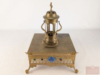 | #174 | Support pour bible et porte-chandelle en laiton, mesurant 10 pouces de hauteur Support pour bible et porte-chandelle en laiton, mesurant 10 pouces de hauteur | ||