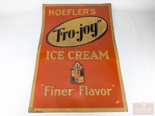 | #18 | Ancienne affiche publicitaire Hoefler's FroJoy Ice Cream Finer Flavor en métal, mesurant 26x25 pouces Ancienne affiche publicitaire Hoefler's FroJoy Ice Cream Finer Flavor en métal, mesurant 26x25 pouces | ||