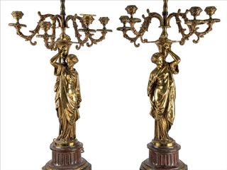 | #57 | Superbe paire de chandeliers électrifiés en bronze doré, style second-empire (Napoléon III), datant du19eme siècle et mesurant 26 pouces de hauteur Superbe paire de chandeliers électrifiés en bronze doré, style second-empire (Napoléon III), datant du19eme siècle et mesurant 26 pouces de hauteur | ||
