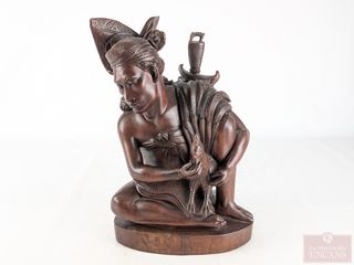 | #163 | Ancienne sculpture japonaise sur bois, datant du 19eme siècle et mesurant 22.5 pouces de hauteur Ancienne sculpture japonaise sur bois, datant du 19eme siècle et mesurant 22.5 pouces de hauteur | ||